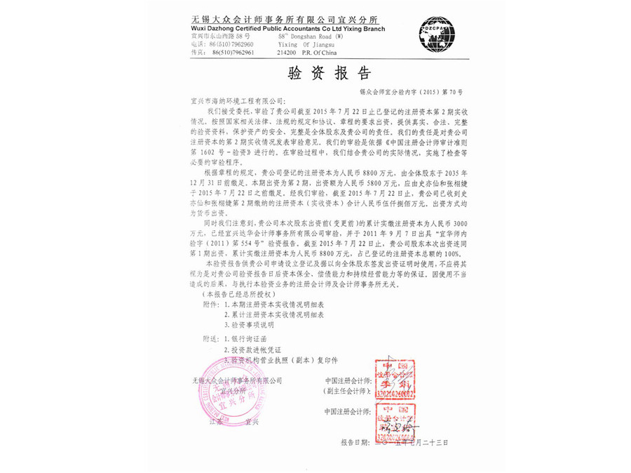 Environmental capital verification report